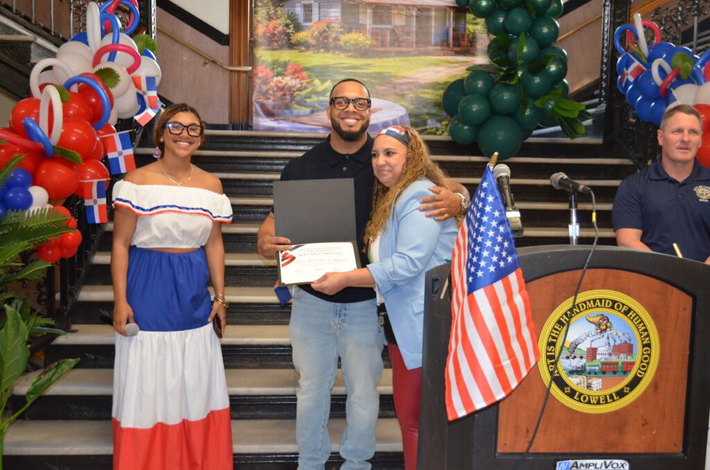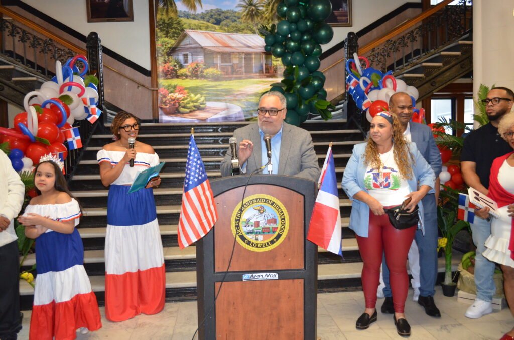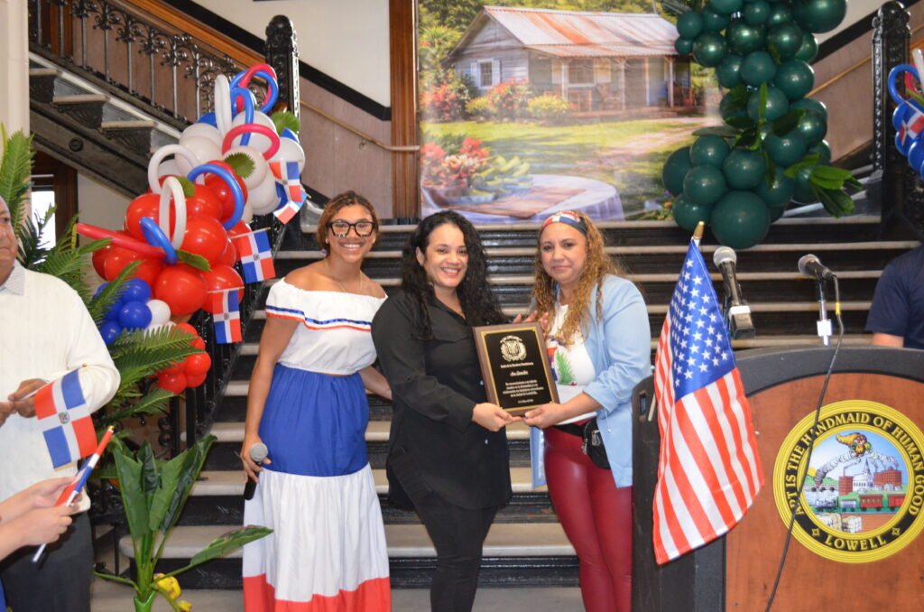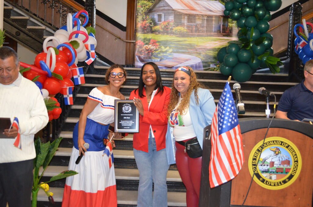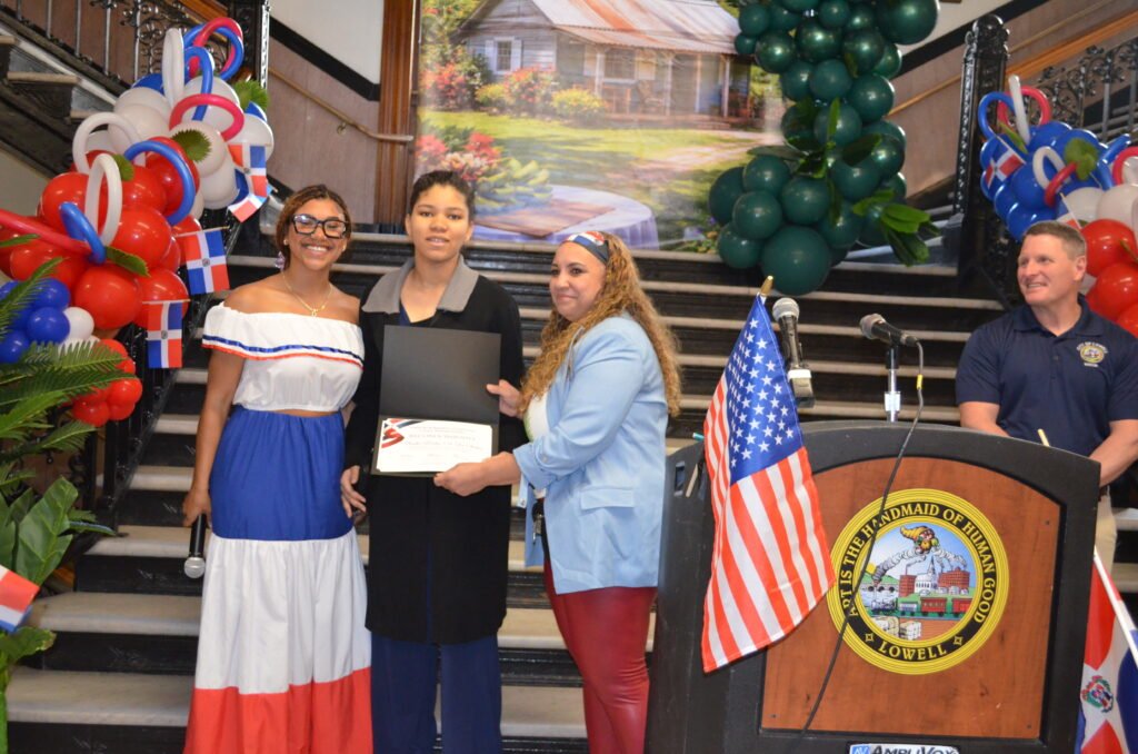 Durante el acto protocolar, el alcalde de la ciudad, Erik Gitschier, hizo entrega de una proclama a la organización, reconociendo el Día de la Izada de la Bandera Dominicana y resaltando la denodada labor de los dominicanos residentes en Lowell, así como su contribución al desarrollo social, económico y cultural de la ciudad. De igual modo, Vanna Howard, first Cambodian-American state senator in the United States, recién electa.